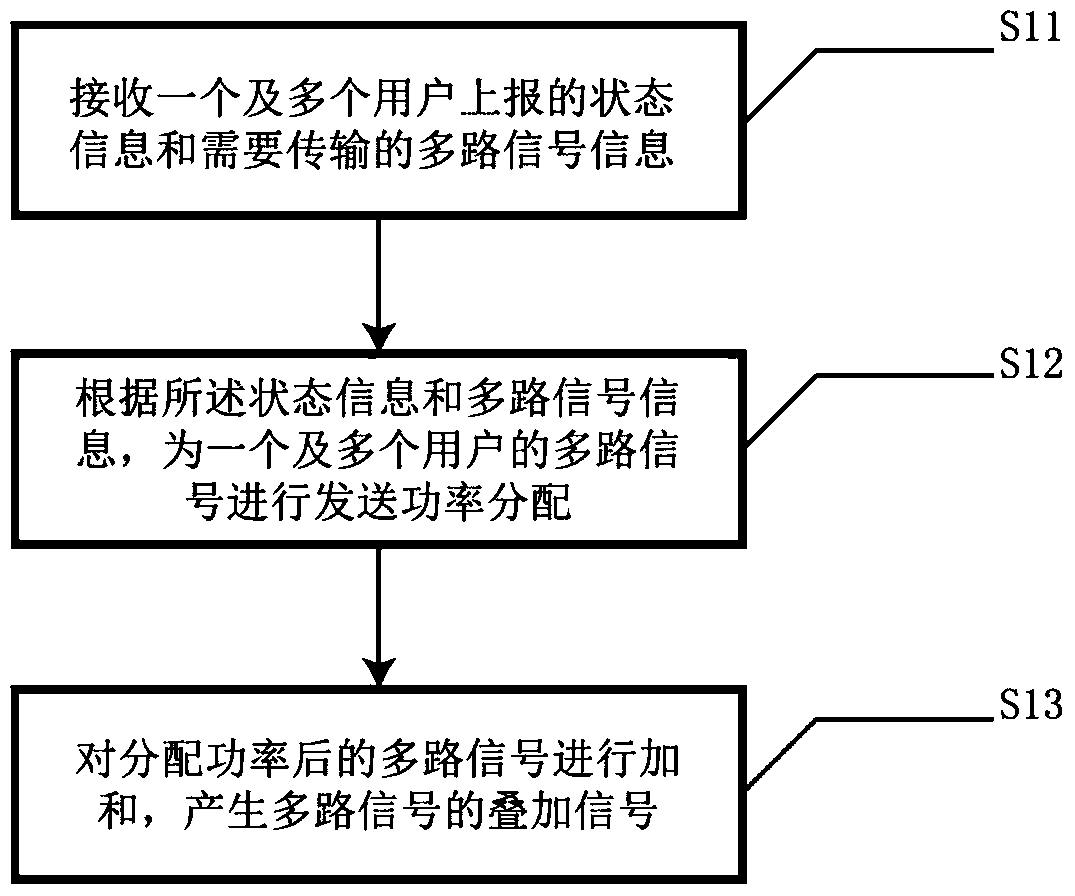 - 项目简介 本发明实施例公开了一种多用户功分复用的方法和装置,所述多用户功分复用的方法包括:接收一个及多个用户上报的状态信息和需要传输的多路信号信息;根据所述状态信息和多路信号信息,为一个及多个用户的多路信号进行发送功率分配;对分配功率后的多路信号进行加和,产生多路信号的叠加信号。通过利用本发明实施例,发送端为多路信号分配不同的发送功率,从而实现了当多用户信道之间不存在差异化明显的路径损耗时,这些用户的多路信号也能同时同频的进行传送,解决了功率复用中当信号路径损耗差异化小时现有功分复用技术不能工作的问题,提高了网络传输能力。