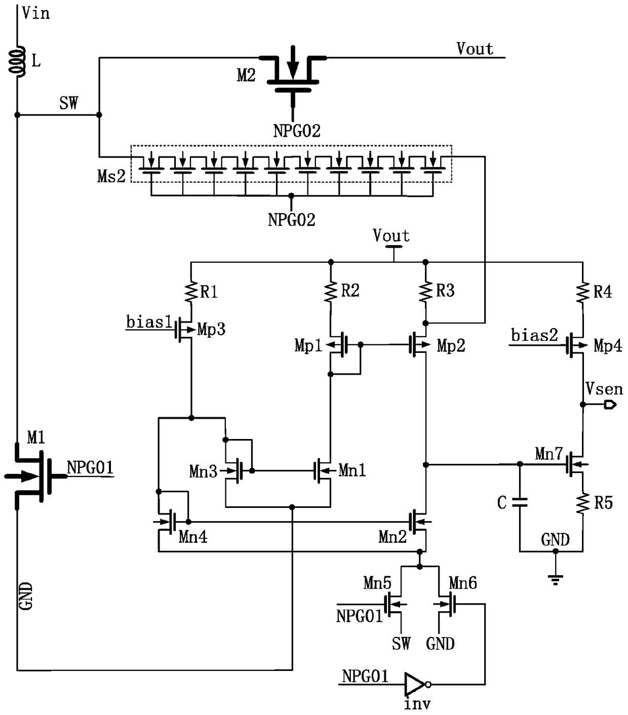 - 项目简介 本发明属于微电子技术领域,特别涉及一种全周期电流检测电路。一种全周期电流检测电路,包括电感电流上升模式电流检测电路和电感电流下降模式电流检测电路。本发明公开的一种全周期电流检测电路具有以下有益效果:1、全周期电流检测电路采用电路复用的方式,结构简单,电路规模小,功耗低;2、电感电流上升检测模式利用功率MOS管的自身沟道电阻作为采样电阻,消除了外加采样电阻带来的功率损耗;3、电感电流下降检测模式采用电流镜检测方法对电感电流进行采样,采样电流为电感电流等比例缩小4000倍后的值,有利于降低采样电路的功耗。