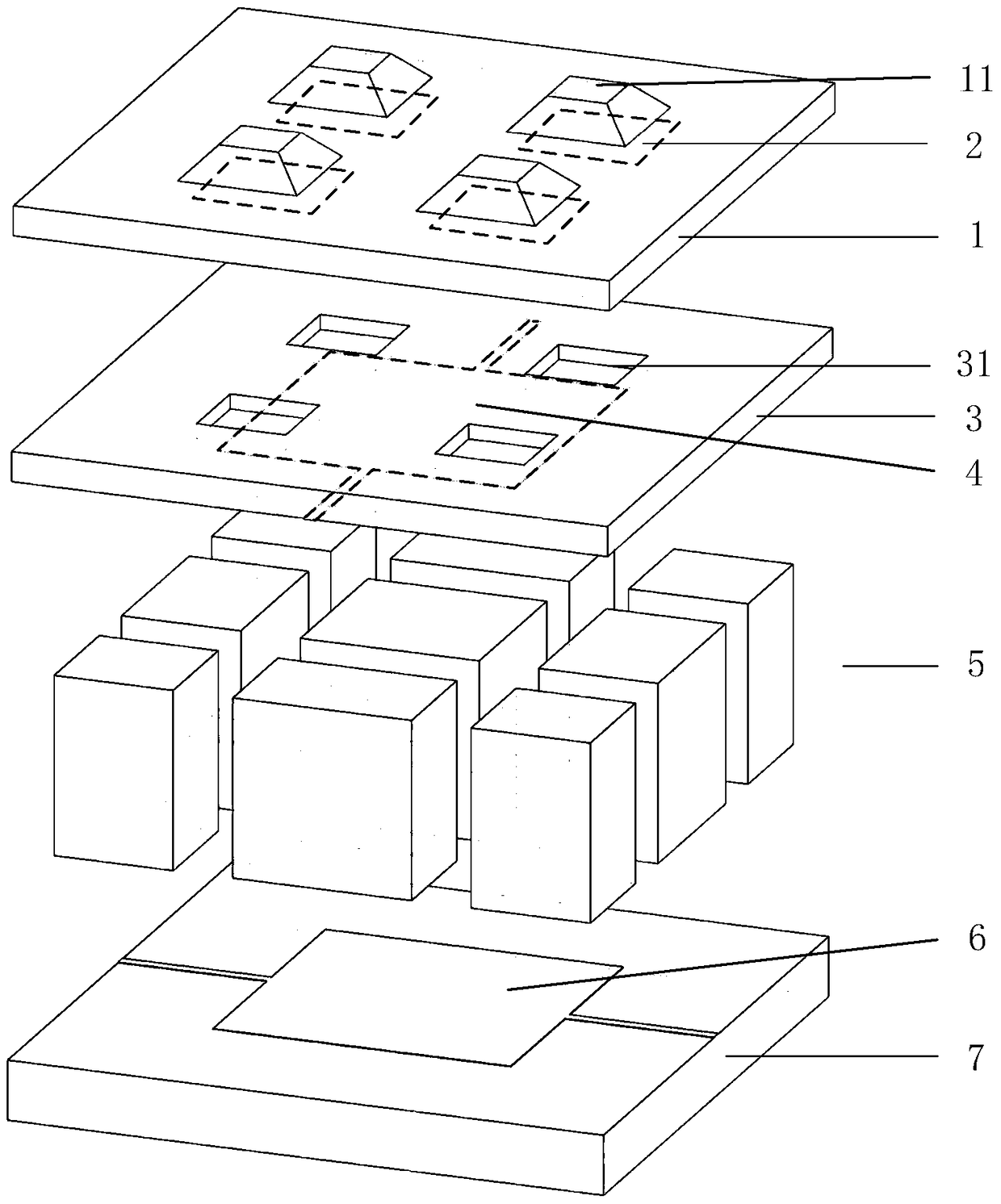 - 项目简介 本发明公开了一种基于仿生结构的柔性触‑压觉传感器,用于解决现有传感器不能同时实现触觉和压觉功能的问题。包括表层衬底、表层感应电极、表层弹性层、驱动电极、底层弹性层、底层感应电极和底层衬底。表层衬底的上表面设置有应力收集突起,其下表面耦合有表层感应电极,表层弹性层的下表面耦合有驱动电极,上表面刻蚀有深度小于表层弹性层厚度的敏感空隙,该敏感空隙与应力收集突起和表层感应电极上下垂直对齐;底层衬底的上表面耦合有底层感应电极,表层衬底、表层弹性层、底层弹性层和底层衬底自上而下依次叠加。本发明能够模仿人体皮肤同时实现触觉和压觉功能,可扩展成电子皮肤用于仿生机器人实现对外界压力刺激的大范围高精度测量。