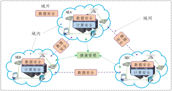 基于可证明数据恢复、可验证数据拥有等新型安全技术,构建高效的域内数据加密存储、密文操作方案,实现云端数据的安全可靠存储;利用分层分级密钥分配、访问控制加密等密码学工具,设计支持动态用户和数据的双向认证方法,对域外数据提供细粒度的访问控制和权限管理;结合不经意随机访问机、区块链(智能合约)等原理,建立数据安全传输、延伸控制与回溯验证方法,保障域间数据的安全交互和协同共享。