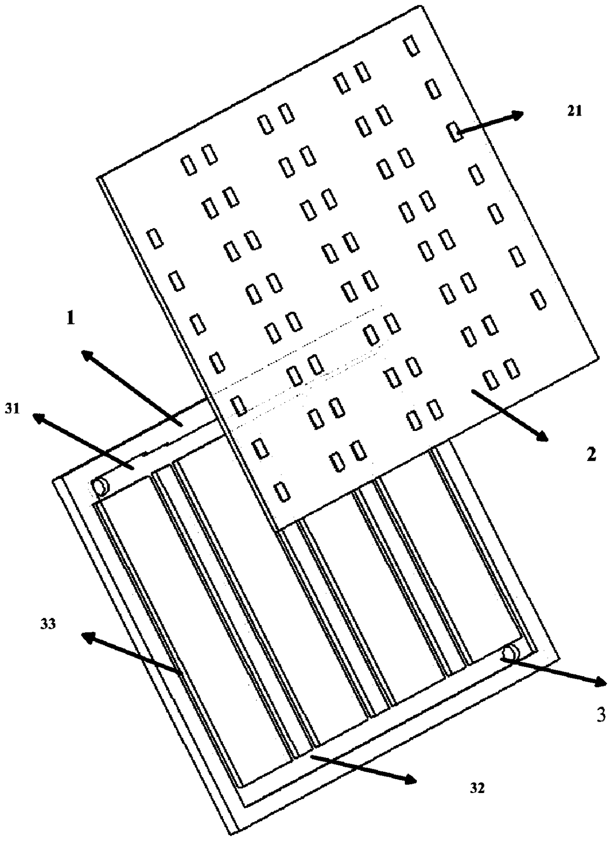 - 项目简介 本发明公开了一种热源面温度均匀的微通道散热器,主要解决现有微通道散热器热源面温度分布不均问题。其包括基板(1)和盖板(2),基板(1)内设有由有入口主槽(31)、出口主槽(32)和平行通道(33)组成的流道结构(3);该出口主槽(32)和入口主槽(31)均采用长方体结构;该入口主槽(31)的深度、长度与出口主槽(32)的深度、长度相同,宽度为逐级递减的阶梯状;平行通道(33)由平行排列的数个矩形通道构成,每个矩形通道沿着液体流动方向的截面为深度逐渐减小的直角梯形形状;盖板(1)固定在基板(2)上,使流道结构(3)在其之间形成密闭的通道。本发明提高了整个热源面的温度均匀性,保证了电子产品的性能。