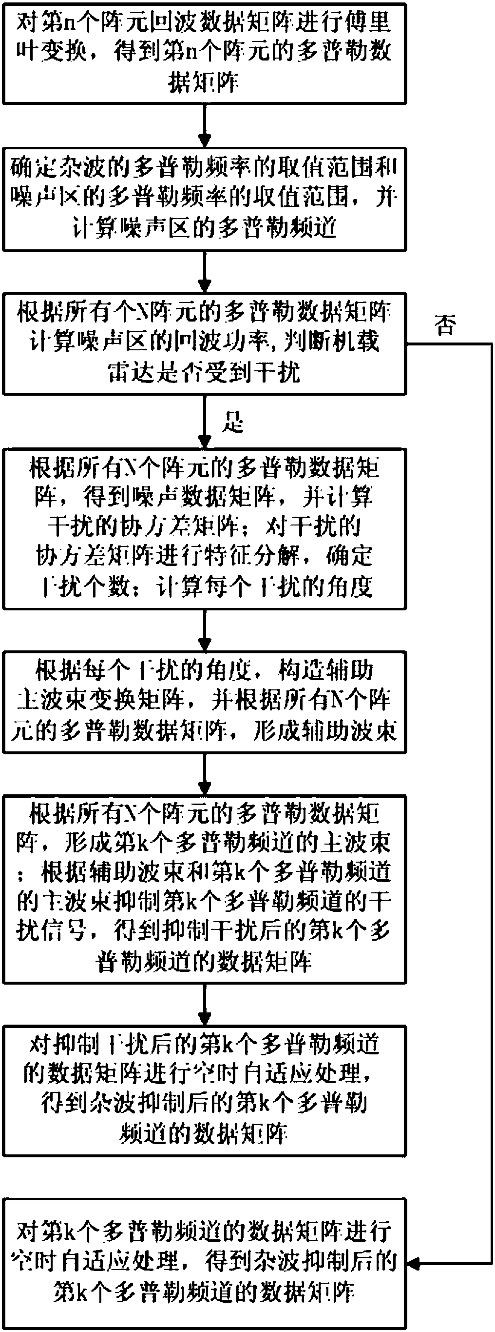 - 项目简介 本发明公开了一种杂波背景下对机载雷达的有源压制式干扰抑制方法,包括以下步骤:(1)对第n个阵元回波数据矩阵进行傅里叶变换;(2)确定杂波的、噪声区的多普勒频率的取值范围,计算噪声区的多普勒频道和回波功率;(3)若相控阵雷达受到干扰,计算干扰的协方差矩阵,对其进行特征分解,确定干扰个数,并计算每个干扰的角度;形成辅助波束和第k个多普勒频道的主波束,抑制第k个多普勒频道的干扰信号,得到抑制干扰后的第k个多普勒频道的数据矩阵,再对其进行空时自适应处理,得到杂波抑制后的第k个多普勒频道的数据矩阵;若相控阵雷达没有受到干扰,对第k个多普勒频道的数据矩阵进行空时自适应处理,得到杂波抑制后的第k个多普勒频道的数据矩阵。