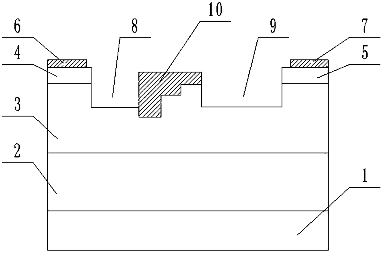 - 项目简介 本发明属于场效应晶体管技术领域,特别是公开了一种具有三凹陷结构的场效应晶体管及其制备方法;旨在提供一种具有宽沟道深凹陷且能够提高输出电流和击穿电压,改善频率特性的一种具有三凹陷结构的场效应晶体管及其制备方法;采用的技术方案为:自上而下设置有4H‑SiC半绝缘衬底、P型缓冲层、N型沟道层,N型沟道层的两侧分别设置有源极帽层和漏极帽层,所述源极帽层和漏极帽层的表面分别设置有源电极和漏电极,N型沟道层中部且靠近源极帽层的一侧设置有阶梯状的栅电极,栅电极和N型沟道层两侧形成左侧沟道和右侧沟道。