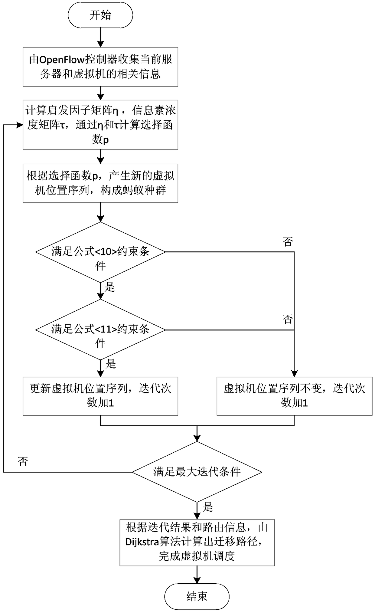 - 项目简介 本发明公开了一种基于OpenFlow框架下云数据中心虚拟机调度方法,主要解决现有云计算数据中心环境下迁移方案优化目标单一的问题。其实现步骤为:1)通过OpenFlow控制器收集云数据中心中服务器和虚拟机的相关信息,分析虚拟机负载周期及变化情况;2)根据基于信息素扩散的蚁群算法计算出新的虚拟机位置;3)由OpenFlow控制器收集的路由信息和新的虚拟机位置;4)根据路由信息和新的虚拟机位置利用Dijkstra算法计算出合适的迁移路径,完成对虚拟机调度。本发明能够实现云数据中心整体能耗降低和负载均衡这两个优化目标,可用于在OpenFlow框架下利用改进的蚁群算法对虚拟机进行调度。