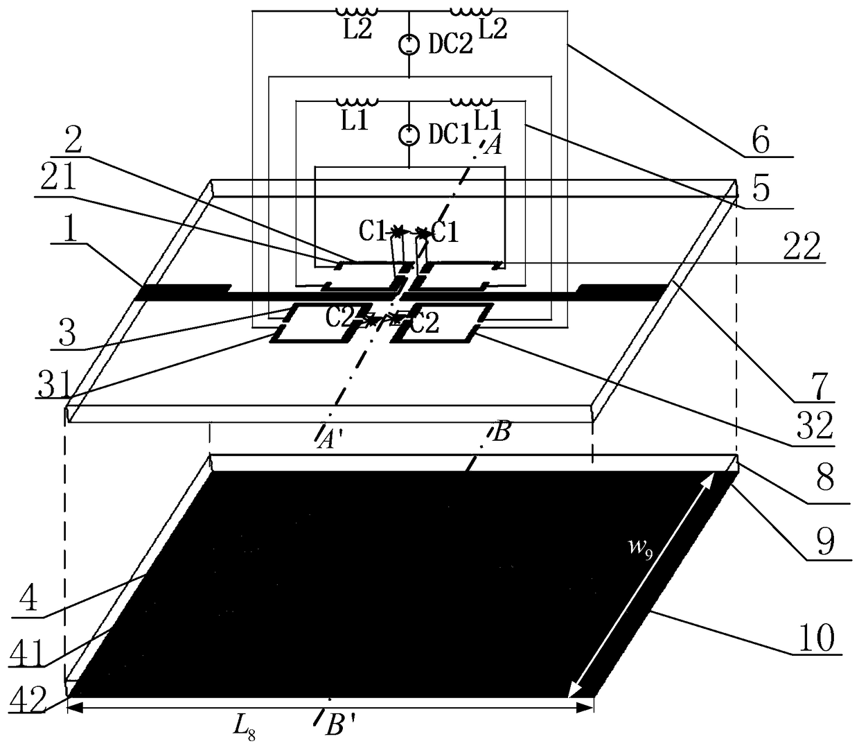 - 项目简介 本发明公开了一种基于双层谐振器的电调四通带滤波器,主要解决传统电调滤波器通带数量少、可调通带带宽不恒定,带外抑制度差和体积大的问题。其包括设置在上微带介质基板(7)上的一对平行耦合馈线(1)和一对可调阶梯阻抗谐振器(2,3)、设置在下微带介质基板(8)上的枝节加载谐振器(4)及两个直流偏置电路(5,6);两个直流偏置电路(5,6)分别连接在可调阶梯阻抗谐振器(2)和(3)的两端,分别实现第三通带和第四通带的连续可调;枝节加载谐振器(4)实现对第一通带和第二通带的固定。本发明尺寸小、带外抑制度高、能实现四通带,且在带宽基本保持不变的情况下实现第三通带和第四通带的连续可调,可用于无线通信系统。